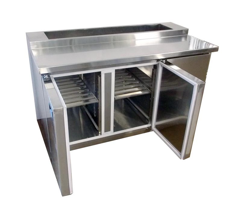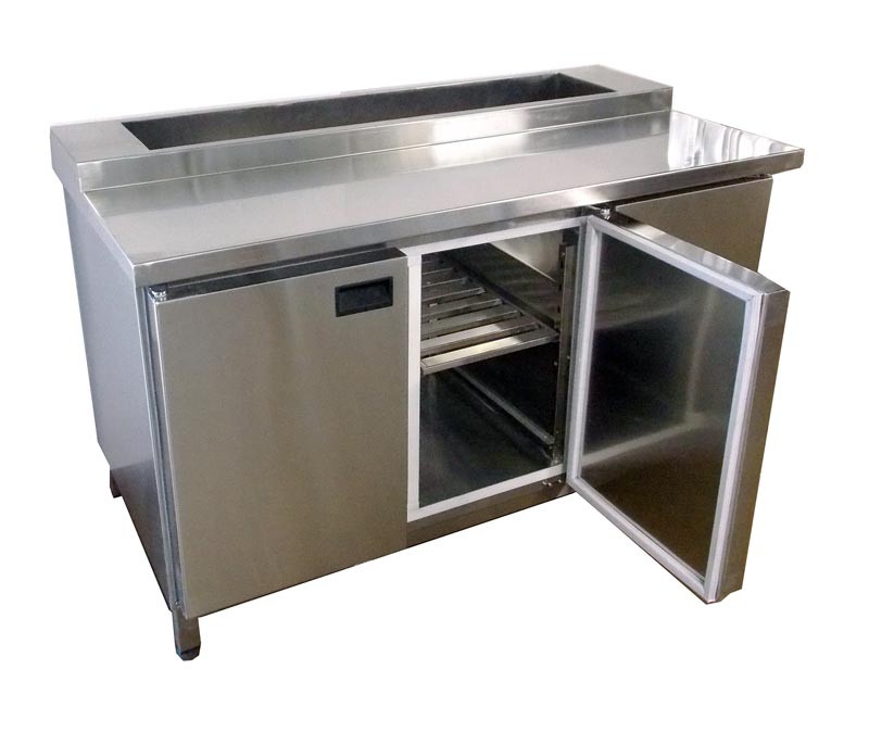 В столешнице встроенная ванна под гастроемкости GN 1/4 - 7 штук, глубиной 150 мм.