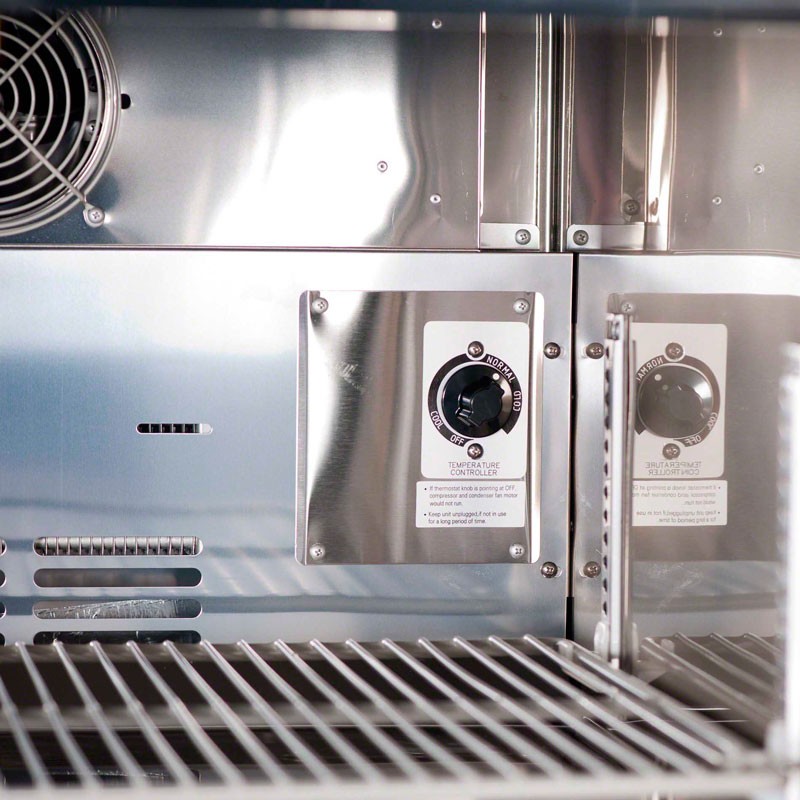 Теплоизоляция. Столы оснащены пожаробезопасными стенками толщиной 60 мм, что в в свою очередь уменьшает потребление электроэнергии. Так же для предотвращения передачи тепла из зоны, где её производится больше всего (компрессорная), компания Turbo Air разработала специальную стенку, что бы улучшить теплоизоляцию и работу всех систем в целом.