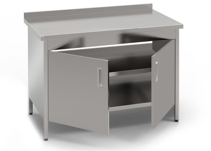 Стол-тумба из нержавеющей стали используется на кухне ресторана, кафе, столовой