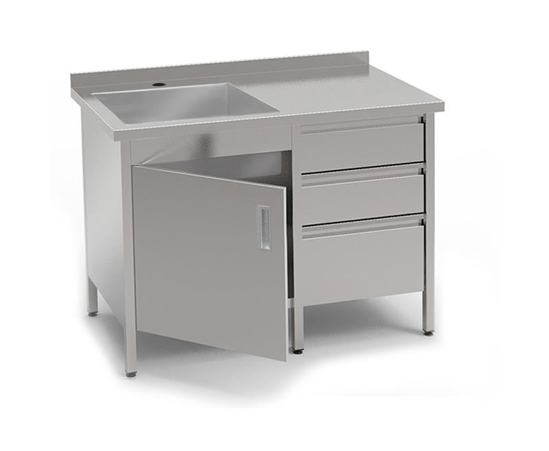 Стол-тумба с ванной моечной из нержавейки КИЙ-В СТМВ-1С-1ДР-3Я
