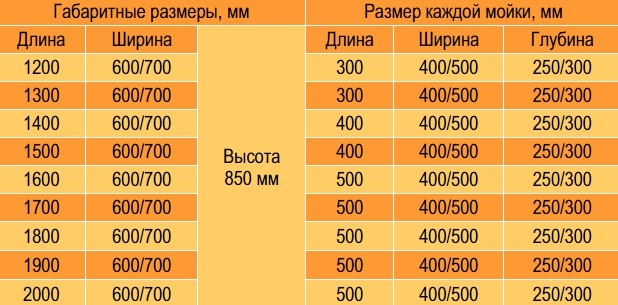 Внутренний размер чаши: 300х400, 300х500, 400х400, 400х500, 500х400, 500х500 мм.