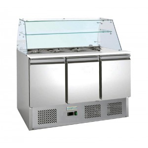 3-х дверный холодильный стол для пиццы с салат баром и гранитной поверхностью на 400 л. Габариты: 1365х700х1010 мм. Мощность: 230 Вт.