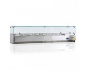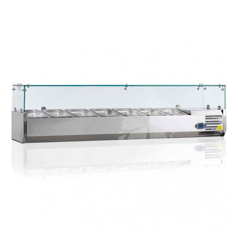 Настольная барная холодильная витрина VK38-160 прекрасно подходит для кратковременного хранения и демонстрации, предварительно охлажденных продуктов (салатов, закусок, гарниров) в магазинах, кафе, барах, ресторанах, суши-барах. Наиболее широко применяются в пиццериях для хранения топпинга (начинки для пиццы).