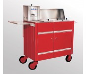 Корпус передвижного прилавка изготавливается в нержавеющем и крашенном вариантах.