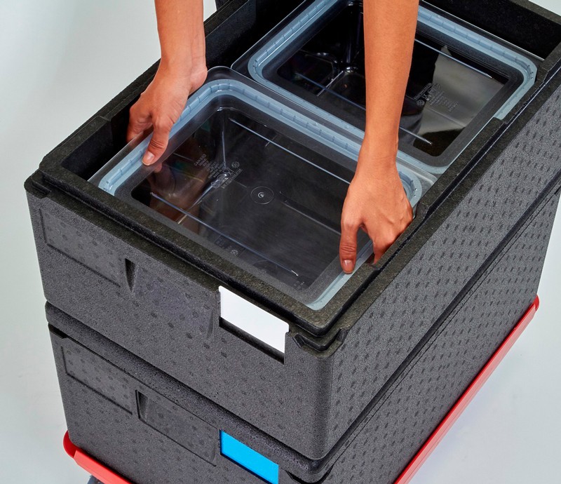 Термоконтейнер Cambro EPPCB250 110 серии Cam GoBox предназначен для хранения и транспортировки блюд в одноразовой посуде и поддонов Gelato.