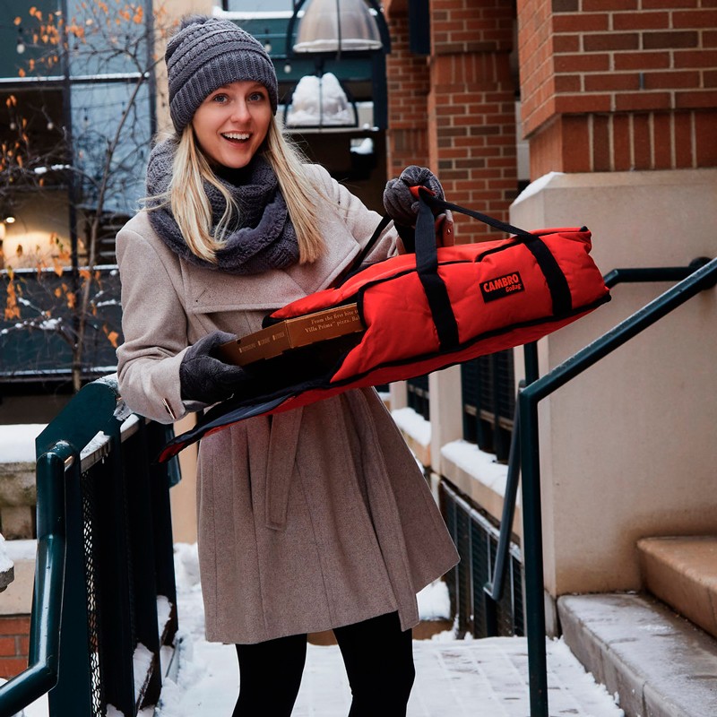 Термосумка GBP216 521 Pizza Bag от Cambro отлично подойдет для кратковременного хранения и доставки пиццы.
