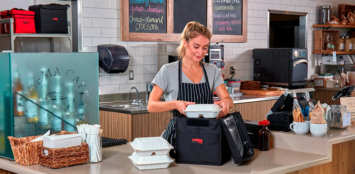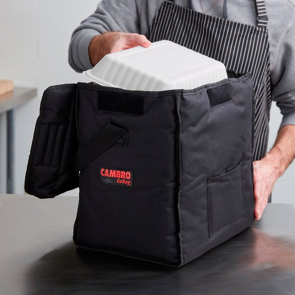 Складная термосумка GBD13913 GoBag от Cambro отлично подойдет для кратковременного хранения и доставки еды, обедов, ланч боксов. В термосумке удобно перевозить такие популярные продукты как пицца, суши