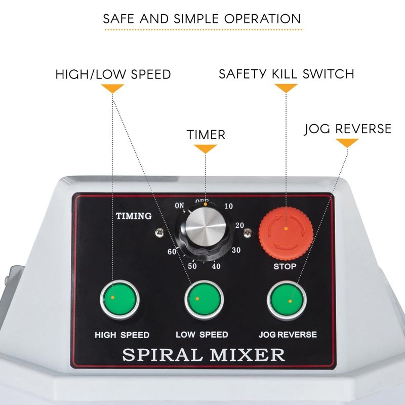 Наличие двух скоростей позволяет адаптировать процесс замеса под разные типы теста — от мягкого до плотного.