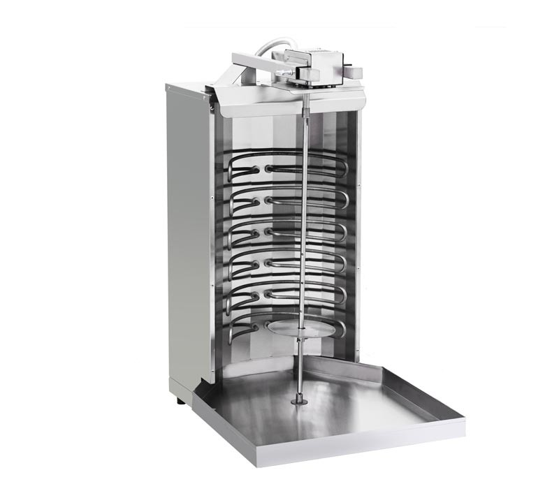 Гриль для шаурми ШЕ-40П сконструйований таким чином, що геометрія ТЕНів повторюють м'ясну заготівлю, що забезпечує кращу фокусування тепла на м'ясний заготівлі.