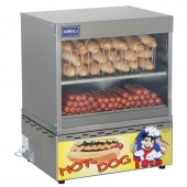 Апарат для хот догів готує одночасно 4 булочки на штирі і 16 сосисок на пару.