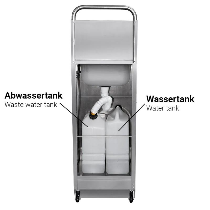 Автономний умивальник GGM Gastro HWBP4312PS призначений для роботи в умовах, коли немає можливості підключитися до водопроводу та каналізації. Особливо оцінять автономний рукомийник підприємства вуличної торгівлі, фаст-фуду, виїзної торгівлі.