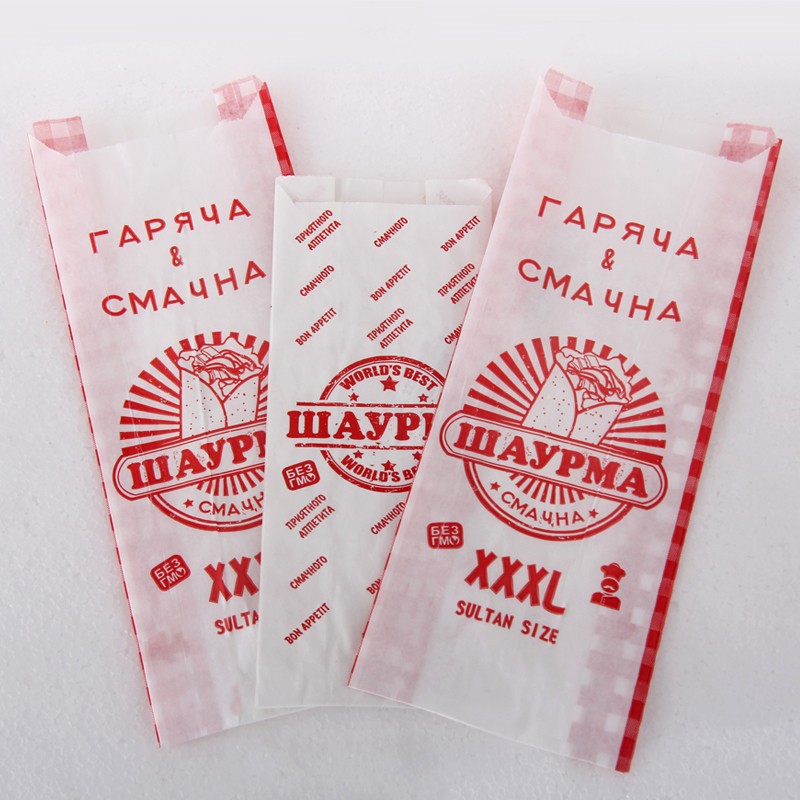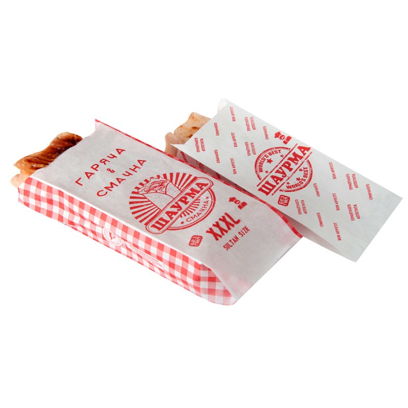 Паперовий пакет для шаурми з білого харчового крафта з малюнком.