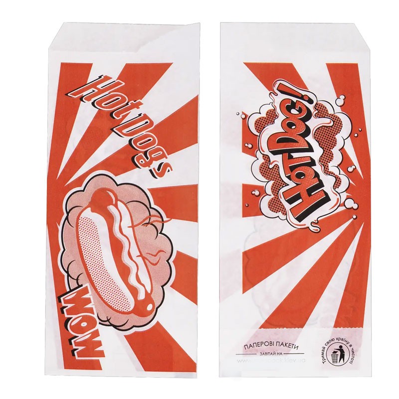 Технічні характеристики Паперовий пакет куточок для хот-догу Hot-Dogs WOW 190х85 мм. (35)