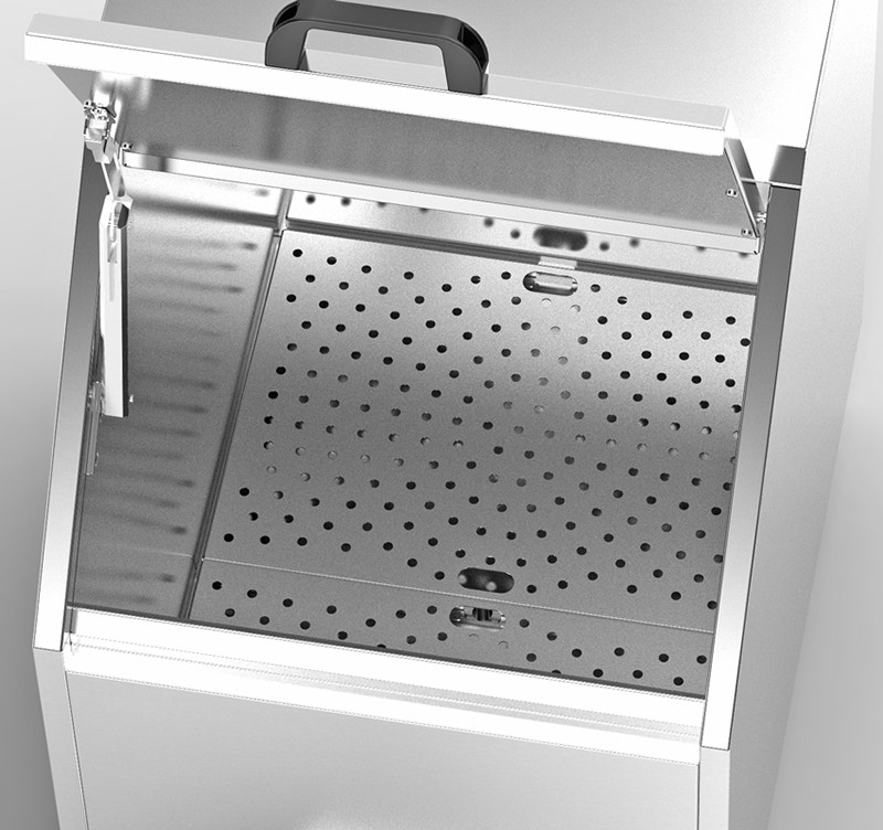 Перфоровані лотки на дні бункера для відділення льоду і води.