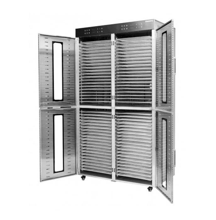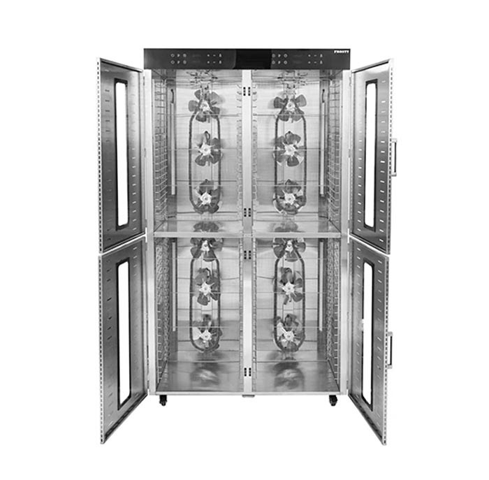 Промисловий дегідратор Frosty FFD-80H з горизонтальним обдуванням та 80 лотками з нержавіючої сталі використовується для сушіння фруктів, овочів, м'яса, риби, грибів, для приготування сухофруктів, пастили.