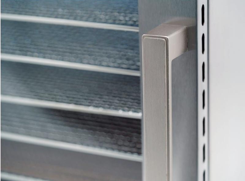 У моделі DH-10H-SS нагрівання відбувається за рахунок нагрівальних елементів, а вентилятор розподіляє гаряче повітря всередині сушарки для продуктів горизонтально, забезпечуючи рівномірне сушіння продуктів.