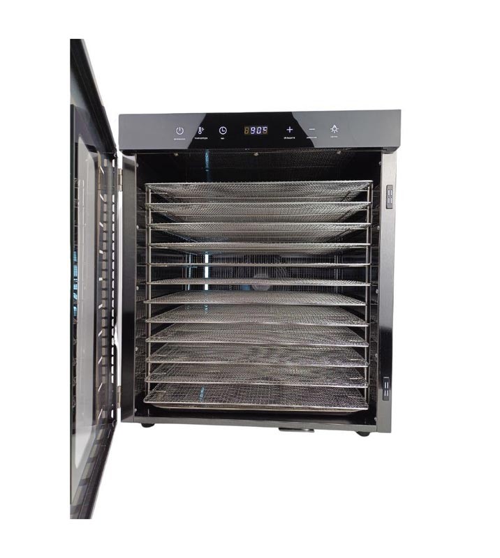 У моделі DH-10HB-BK нагрівання відбувається за рахунок нагрівальних елементів, розташованих на задній стінці, а вентилятор розподіляє гаряче повітря всередині камери горизонтально, забезпечуючи рівномірне сушіння продуктів.