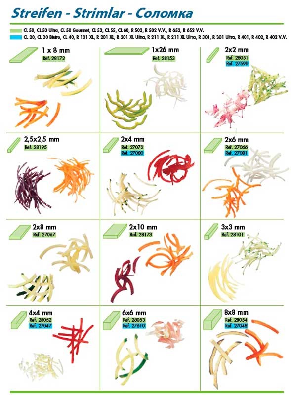 Сумісний з овочерізки: CL50, CL50 Gourmet, CL50 Ultra, CL52, CL55, CL60 і кухонними процесорами R 502, R 652.