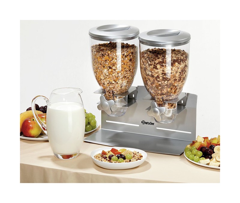 Диспенсер Bartscher 500378 призначений для порціонної роздачі мюслів, пластівців, горіхів, круп в кафе, ресторані, їдальні.