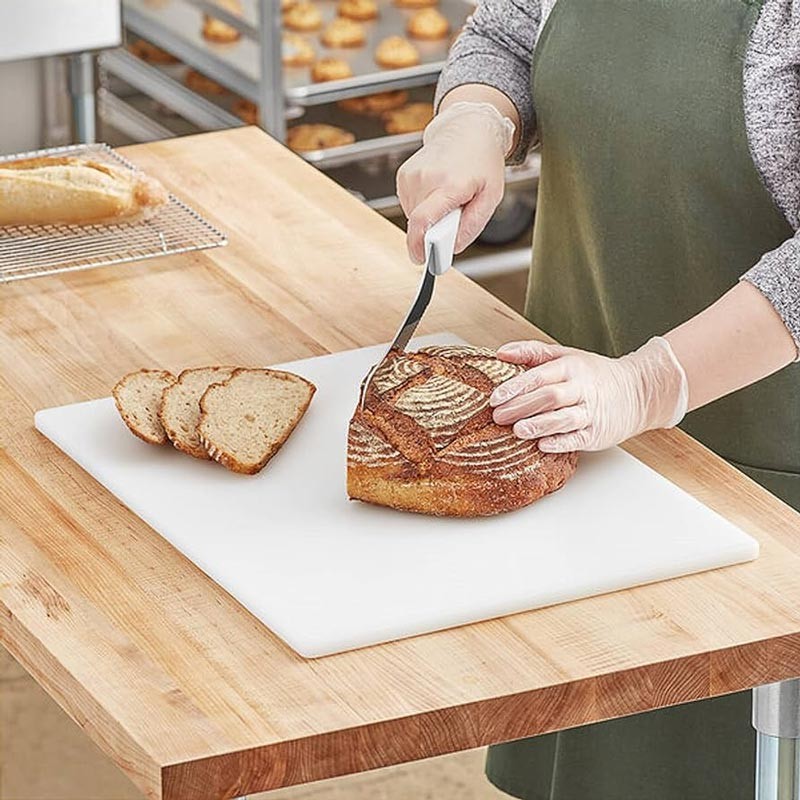 Професійна обробна дошка білого кольору використовується для молочних та хлібобулочних виробів на підприємствах громадського харчування.