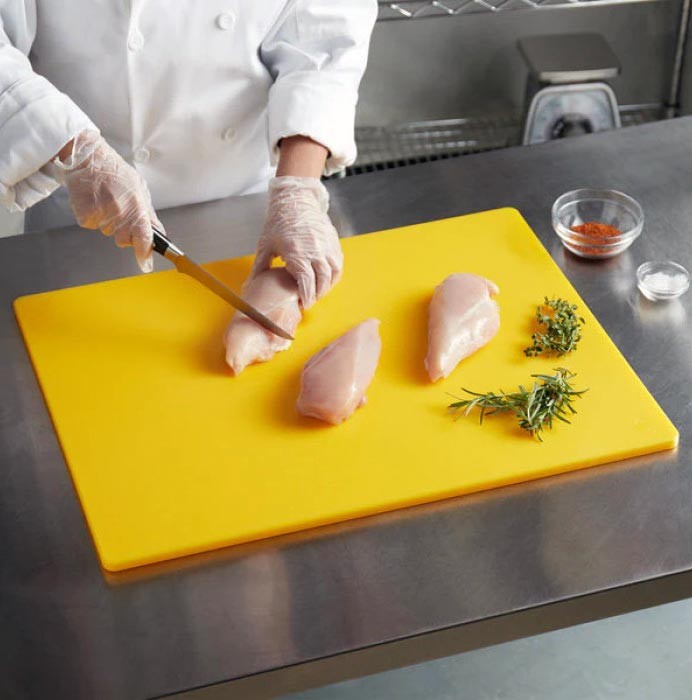 Професійна обробна дошка жовтого кольору використовується для обробки сирого птаха на підприємствах громадського харчування.