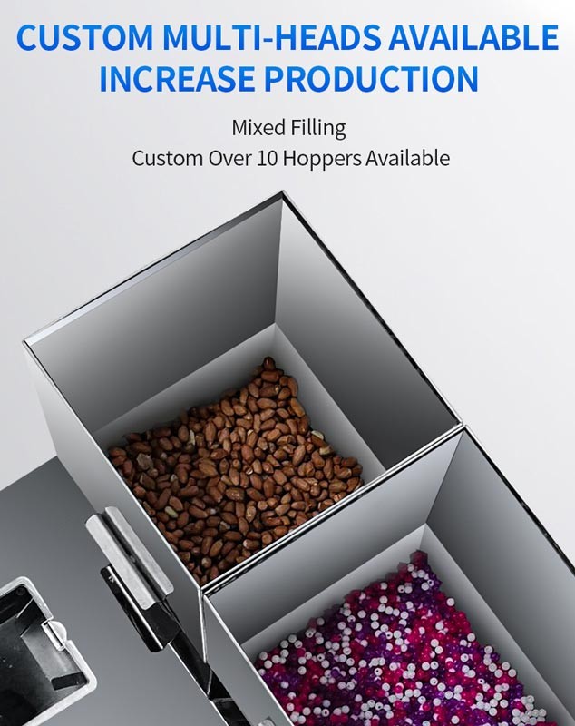 Дозатор Hualian NPF-2T-100 використовується для фасування сипучих продуктів (дрібна та велика фракція) в готову упаковку, ваговим способом дозування за допомогою лінійного живильника.