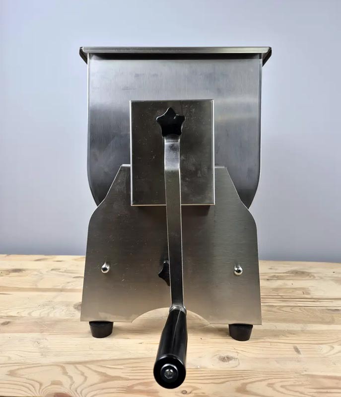 Обсяг діжі становить 30 літрів, що дозволяє обробляти великі партії сировини за один цикл, підвищуючи продуктивність та знижуючи трудовитрати. Завдяки механічному принципу роботи обладнання не вимагає підключення до електромережі і може використовуватися в будь-яких умовах.