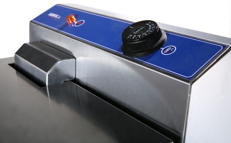 Фритюрниця комплектується міцним кошиком із нержавіючої сталі діаметром 1,0 мм., що значно збільшує термін її експлуатації.