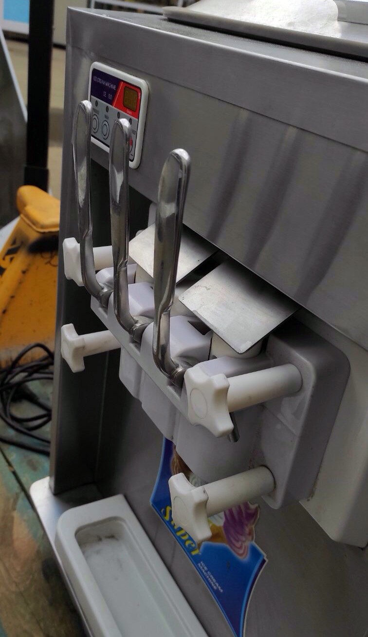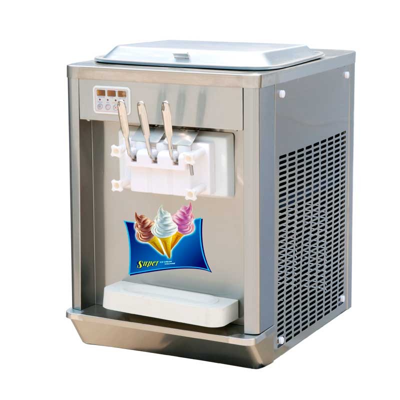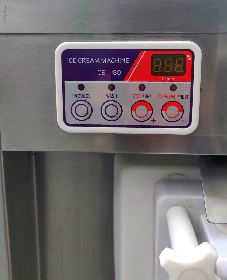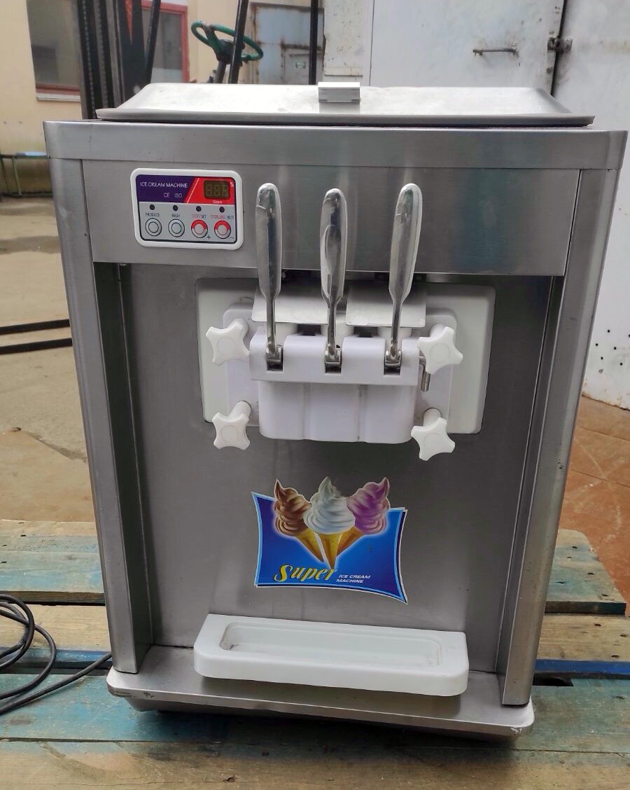 Настільний фризер для м'якого морозива HIM-03 на 3 ріжки, з електронною панеллю управління. Дозволяє використовувати дві суміші різного смаку та оснащений функцією попереднього охолодження (працює постійно).