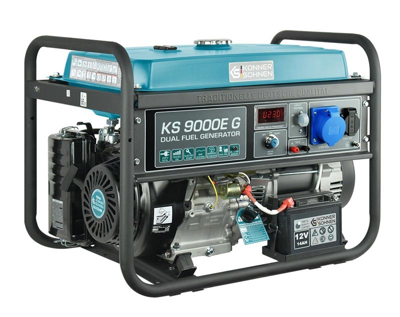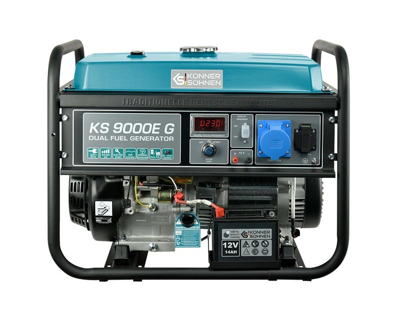 Газобензиновий генератор Konner&Sohnen KS 9000E серії DUAL FUEL можна використовувати як на бензині, так і на зрідженому газі (пропан-бутан). Експлуатація генератора на газі підвищує двигун двигуна. Все необхідне для підключення балона йде у комплекті.