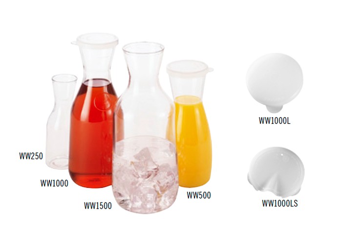 Графин Cambro WW500 з прозорого небиткого полікарбонату Camwear використовується в ресторанах, барах, в басейнах, салонах spa, виїзної торгівлі. Графин може бути використаний для вина, води, соку, холодного чаю та інших напоїв.