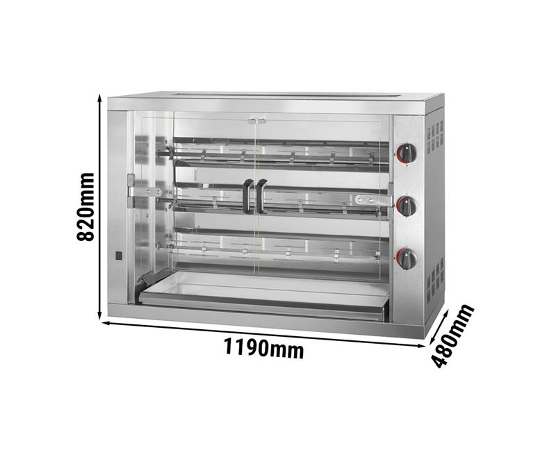 Гриль GGM Gastro GHKM318-B - це професійний газовий гриль для курей з трьома рожнами, створений для громадського харчування, ресторанів, кафе та кейтерингових служб, де важлива висока продуктивність, якість обсмажування та надійність роботи. Унікальна конструкція цього гриля дозволяє одночасно готувати до 18 курей на трьох вертелах, що значно підвищує ефективність кухні та скорочує час приготування страв.