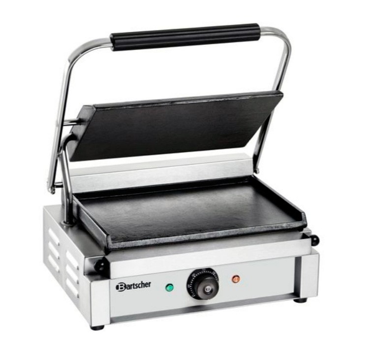 Притискні площині електричного гриля Bartscher A150679 гладкі і виготовлені з чавуну.