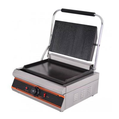 Притискні площини електричного гриля FROSTY SP-1C2 комбіновані та виготовлені з чавуну, верхня та нижня поверхня гриля розігріваються одночасно. Тому немає потреби перевертати продукти. Розмір поверхні контактного гриля 340х230 мм.