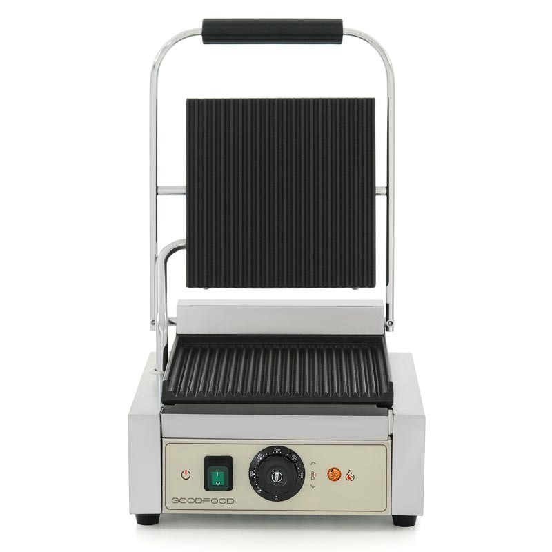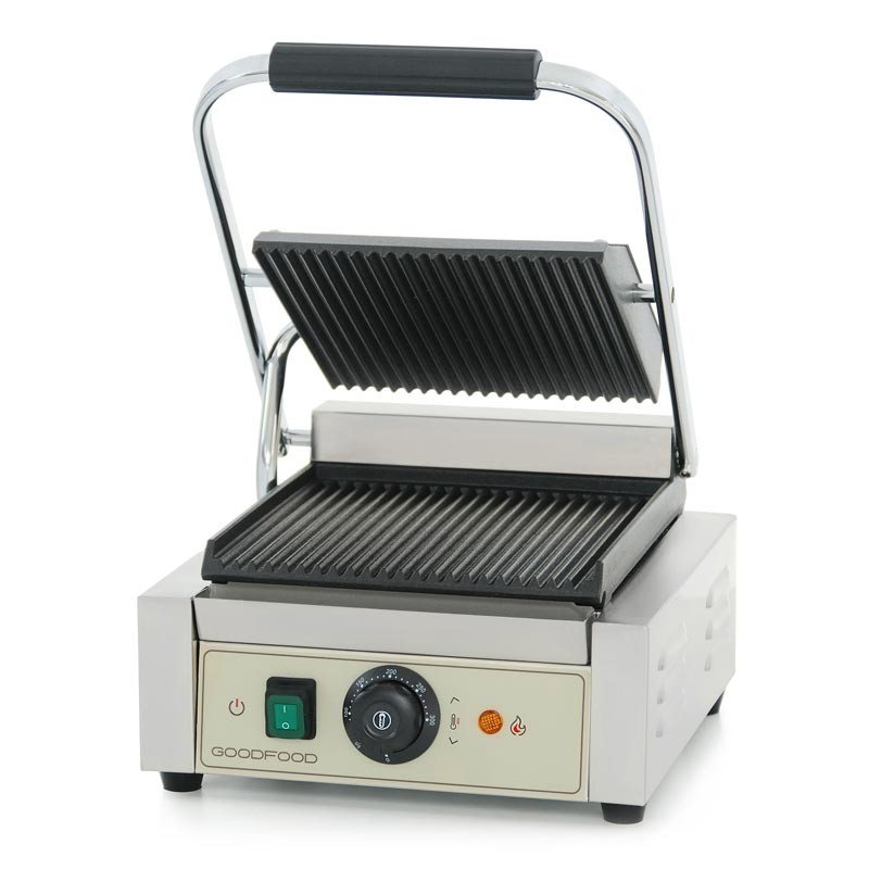 Модель GoodFood ECG10 BEIGE відрізняється простотою у використанні: механічне керування дозволяє легко регулювати температуру, а антипригарне покриття запобігає прилипанню продуктів та значно спрощує процес очищення. Додатковою перевагою є система притиску, що забезпечує щільний контакт із продуктом та рівномірне прожарювання.