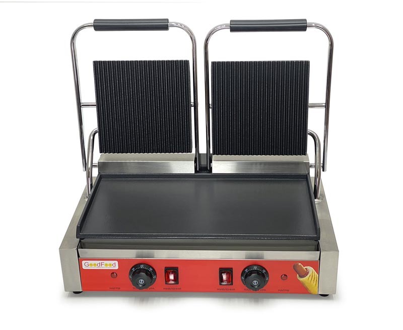 Притискний гриль GoodFood ECG20EA або як його ще називають гриль-тостер або контактний гриль використовується для приготування паніні, шаурми, гамбургерів, стейків, хот-догу, булочок. Притискний Гриль-тостер ECG20EA дозволяє розігріти та нанести на продукт малюнок гриля у вигляді піджаристих смужок, які залишають поверхню притискного гриля.