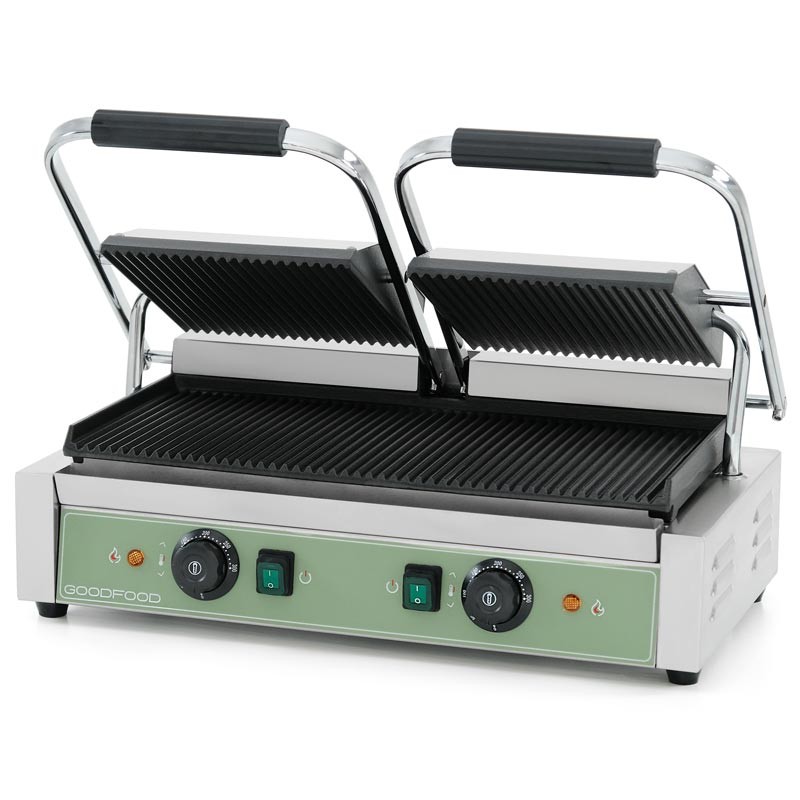 Контактний гриль GoodFood ECG20RR GREEN – це потужне та надійне обладнання для закладів громадського харчування. Модель розроблена для інтенсивної експлуатації та забезпечує швидке, рівномірне прожарювання продуктів з хрусткою скоринкою та апетитним гриль-малюнком.