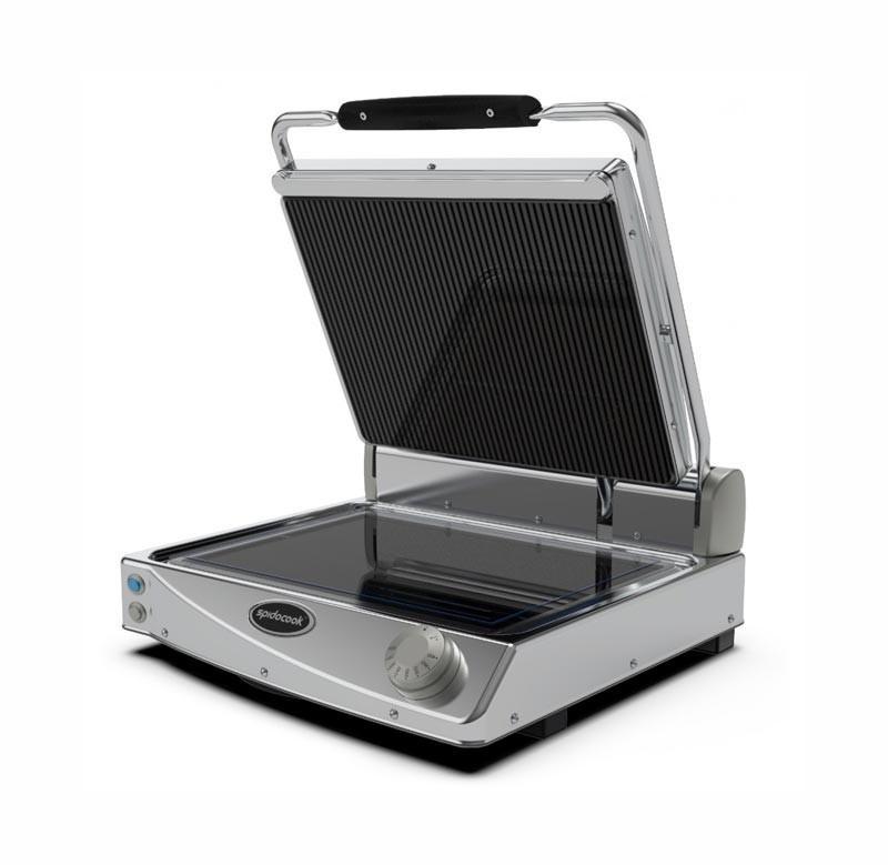 Spidocook SP015PR – професійна система контактного приготування їжі зі склокерамічною поверхнею підходить для приготування широкого спектру різних продуктів, таких як тости, сендвічі, м'ясо, риба, овочі, яйця тощо.