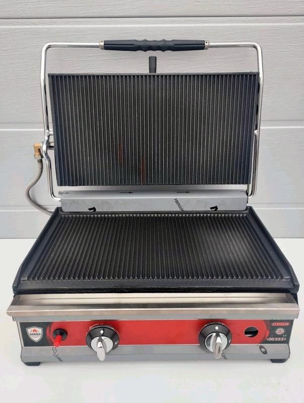 Газовий Притискний гриль Mars MTS-20G або як його ще називають гриль-тостер або контактний гриль використовується для обсмажування паніні, шаурми, гамбургерів, стейків, хот-дога, булочок. Притискний Гриль-тостер Mars MTS-20G дозволяє розігріти та нанести на продукт малюнок гриля у вигляді піджаристих смужок, які залишають поверхню притискного гриля.