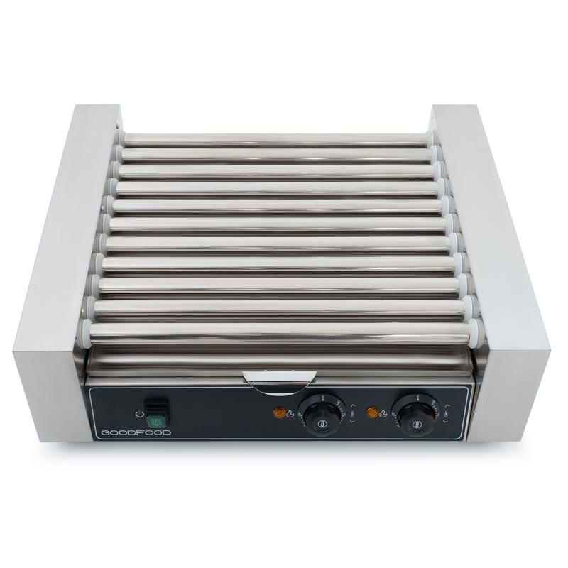 Роликовий гриль GoodFood HDRG11 BLACK — це надійне та ефективне рішення для приготування сосисок, хот-догів та інших продуктів у закладах громадського харчування. Модель ідеально підходить для кафе, фастфуд-точок, вуличної торгівлі та АЗС, забезпечуючи рівномірне прожарювання та привабливу подачу продукції.