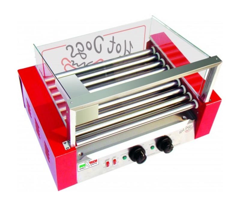 Роликовий гриль INOXTECH HDG 009G зі склом призначений для рівномірного обсмажування сосисок, ковбасок та сардельок.