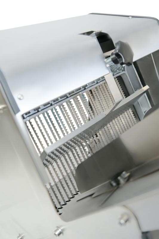 Завдяки системі паралельних ножів хліборізка забезпечує рівні скибочки однакової товщини, без крихт та деформації м'якуша, зберігаючи товарний вигляд готової продукції.