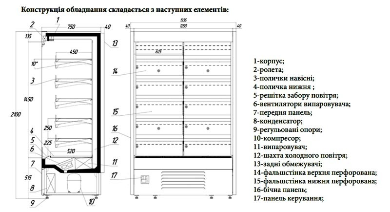 Технічні характеристики Холодильна гірка Juka ADХ125 (без бічних панелей)