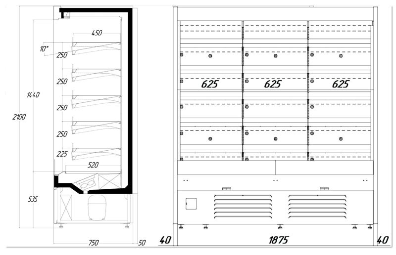 Технічні характеристики Холодильна гірка Juka ADХ187 (без бічних панелей)