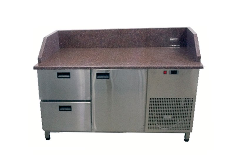 Холодильний стіл Tehma використовується для зберігання заготовок, необхідних для приготування піци. На гранітній поверхні готують красти та укладають начинку.