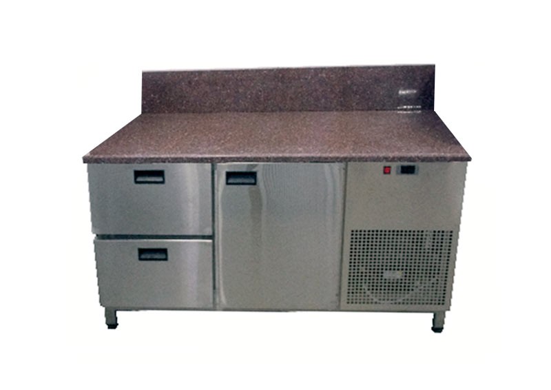 Холодильний стіл з гранітною стільницею 1 двері + 2 ящики задній борт Tehma