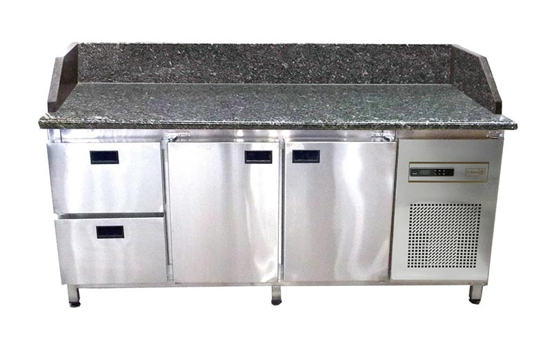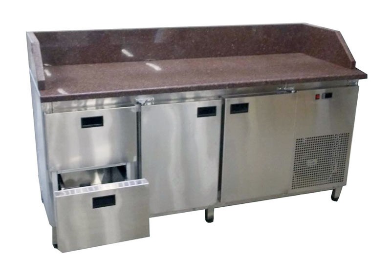 Холодильний стіл з гранітною стільницею 2 двері + 2 ящики, 3 борти Tehma