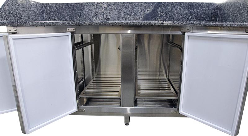 Холодильний стіл Tehma використовується для зберігання заготовок, необхідних для приготування піци. На гранітній поверхні готують красти та укладають начинку.