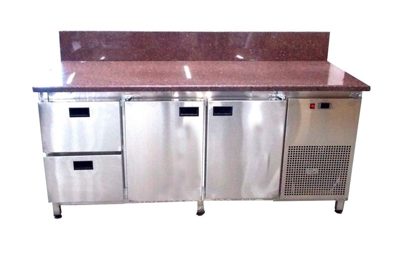 Холодильний стіл з гранітною стільницею 2 двері + 2 ящики, задній борт Tehma