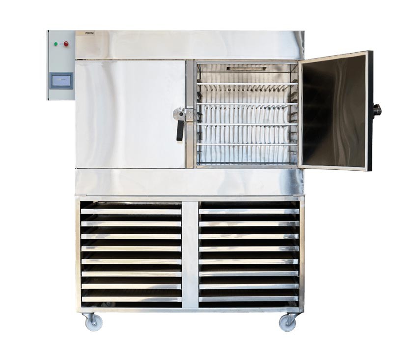 Промислова інфрачервона сушильна шафа GP 8/220 служить для висушування продуктів за допомогою ІЧ-випромінювання Сушіння проводиться дуже швидко. У процесі продукти додатково стерилізуються – інфрачервоні промені знищують патогенну мікрофлору.